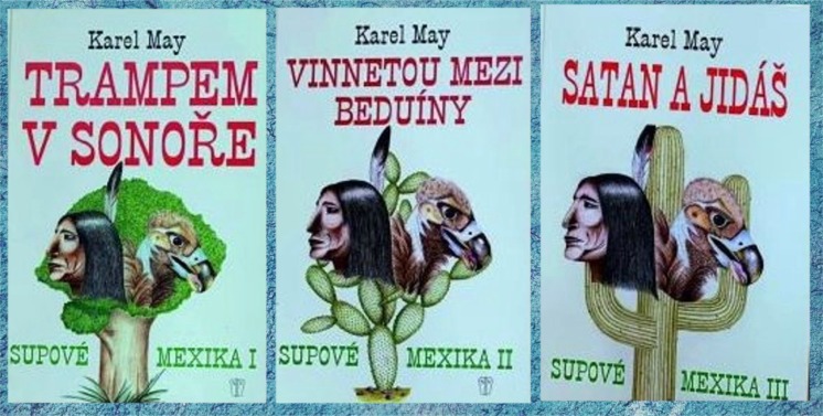Z jedné povídky (Tave Šala) vytvořil May rozsáhlý román - Supové Mexika (vyd. 2014), kniha byla 1973 vydána s ilustracemi Buriana - zde ilustrovala Olga Dvořáková (odvážný pokus - po mistru Burianovi). Povedená rodina Meltonů (Harry, Thomas a jeho syn Jonathan) velicí padouši a chamtivá Judita Silbersteinová jejichž dopadení je provázeno neuvěřitelnými zvraty, dokonce i cestou Old Shatterhanda a Vinnetoua do Afriky, jedno dobrodružství zde stíhá další. Kniha je méně sevřená než Severoamerické příběhy, a přesto má řadu nadšených čitatelů. Karl May celým svým životem usiloval o mír a krásné mezilidské vztahy. Na sklonku své životní pouti už pociťoval první signály přicházející války, nenávisti a ztrát pro Evropu. Jeho poslední přednáška ve Vídni: „Vzhůru do říše ušlechtilých lidí“ sklidila obrovský úspěch. Zde načtrl své vize o budoucnosti lidstva. Psal se ale březen roku 1912. Koncem měsíce navždy odchází do věčných lovišť za svými hrdiny i May. Ještě se stihl posadit a říci: „Vítězství, úplné vítězství. Růžové, vše je růžové.“ To byla jeho poslední slova. Odešel velký bojovník za soulad a přátelství mezi lidmi. Do centra své pozornosti vkládal křesťanské ideály, které, jak už cítil, pomalu z Evropy mizí. Vnímal, jak se nenávratně ztrácí starý svět plný gracie a klidu a řítí se nová, obrovská a doposud neznámá válka. Po ní už nezůstane ze staré středni Evropy kámen na kameni. Autor je pochován v Radebeulu (poblíž Drážďan). Má důstojný hrob v podobě řeckého chrámu. Jsou spisovatelé s darem od Boha, jsou to rození vypravěči. Naše literatura pro mládež má svého Foglara a Luskače, Němci Maye, Angličané Ransoma, Francouzi Dumase a Verneho a Američané Twaina a Londona. Kéž tady s námi zůstanou ještě další léta! Ať mají i další generace k dispozici literaturu plnou citu pro spravedlnost, dobrodružství v přírodě a krásných vztahů mezi lidmi.