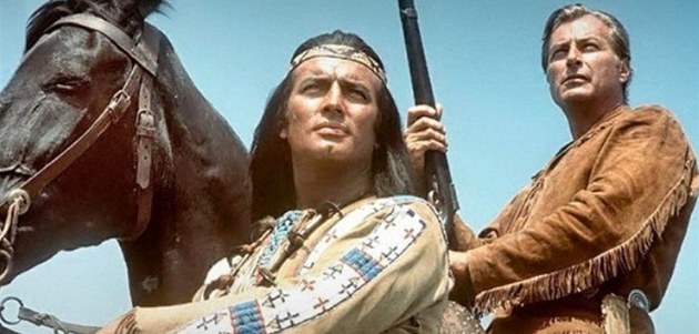 Jak vidí ženy v Německu dva hlavní představitele hrdinů Mayovek? Podle německého časopisu, který uvedenou otázku prošetřil. 1. Francouzský šlechtic a voják v Indočíně baron Pierre Louis de Bris Mnohé ženy v Německu prý vidí Vinnetoua jako správného věrného, pozorného a citlivého přítele (a ještě i krásného - Pierre Brice). Francouzský šlechtic baron Pierre Louis de Bris debutoval v skvělém Pokladu na Stříbrném jezeře. Pierre Brice hrál řadě jedenácti filmů natočených 1962-1968. Ve stáří před smrtí (86) byl smutný, že role Vinnetoua mu vzala šance na jiné role. 2. Lex Barker dobrodruh a voják z New Yorku Old Shatterhanda vidí německé ženy (podle německého tisku) spíše jako manžela, který přijde domů a bude se dívat na televizi a vyžadovat jídlo. Představitel Old Shatterhanda Američan Lex Barker zemřel na infarkt na ulici v New Yorku roku 1973. Bylo mu pouhých 54 let. Vinnetoua a Old Shatterhanda si herecká dvojice (oba herci byli aktivní vojáci a dobrodruzi, Lex Barker byl v boji vážně zraněn, v lebce měl kovovou destičku a Pierre Brice zabil v boji tři lidi, z čehož trpěl celoživotním traumatem) zahrála v sedmi filmech. Celkově tedy bylo v letech 1962-1968 natočeno 11 filmů na motivy Karla Maye. Přes tento krátký časový úsek učinily slavné německé filmy oba herce nesmrtelnými.