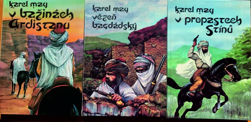 Jihoamerická série dobrodružství Old Shatterhanda vyšla v roce 1974. Knihy měly osobitý charakter (překlad Jiří Stach, ilustrace Gustav Krum) Olympia Praha vydala úspěšnou sérii znovu v roce 1989. Foto obálky. 4. z Afriky: cyklus V zemi Mahdího - 4 díly, 1. Na březích Nilu, 2. Otec pěti set, 3. V ebenové zemi, 4. Poslední otroci jiná vydání jako: Lovci lidí také jako Mahdí a V Sudánu nebo šestidílný román Máhdí