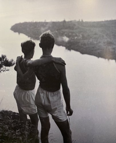 Pětkaři (skautský oddíl od roku 1914) hledí na svůj ostrov uprostřed Sečské přehrady, rok 1939. V zdravém těle zdravý duch.